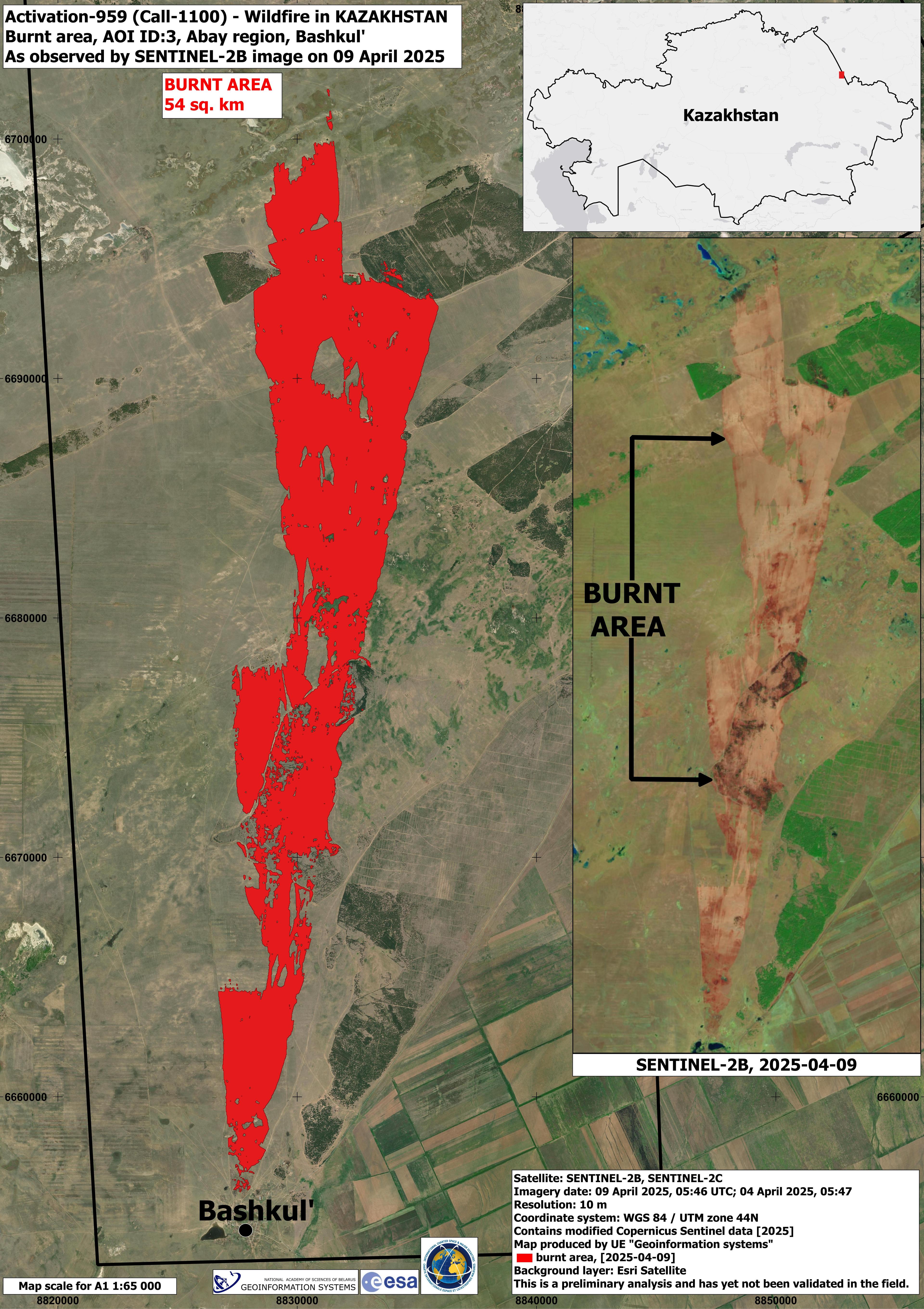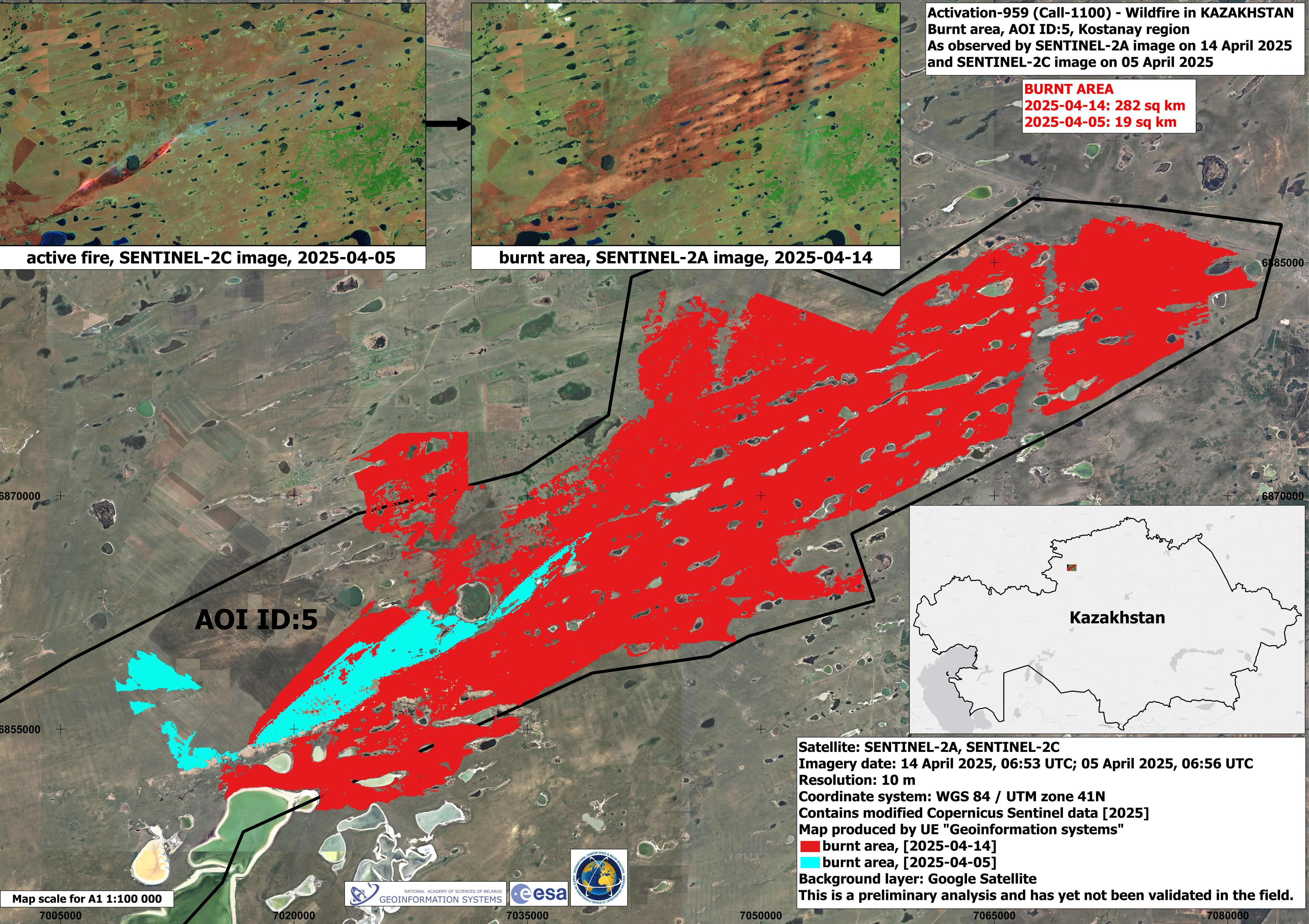 In addition, two steppe fires were reported near the villages of Koyanbai and Bishkul. These incidents posed a threat of spreading to the state forest funds of the Republic of Kazakhstan.