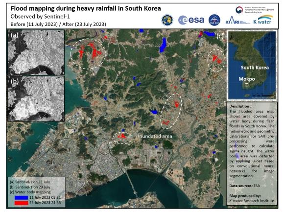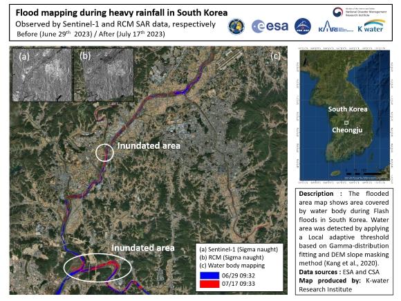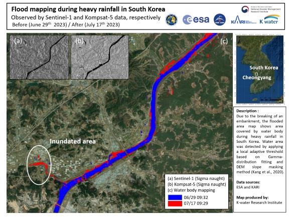 This activation covers value added products using SAR data acquisitions over the flooding. Products acquired through optical imagery over landslides are available in our related activation.