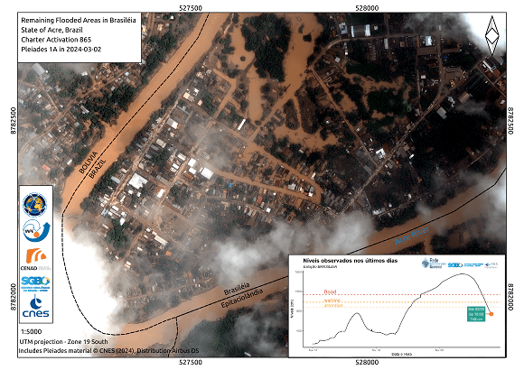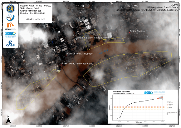 The flooding started on 25 February, and affected 17 of the state's 22 municipalities. Days of torrential caused water levels to rise to record levels in some areas, with the Acre River reaching 15.56 m. Other rivers affected included the Purus, Tarauacá, and Juruá, which caused floods in the cities of Rio Branco, Xapuri, Santa Rosa do Purus, Jordão, and Marechal Taumaturgo, among others.
