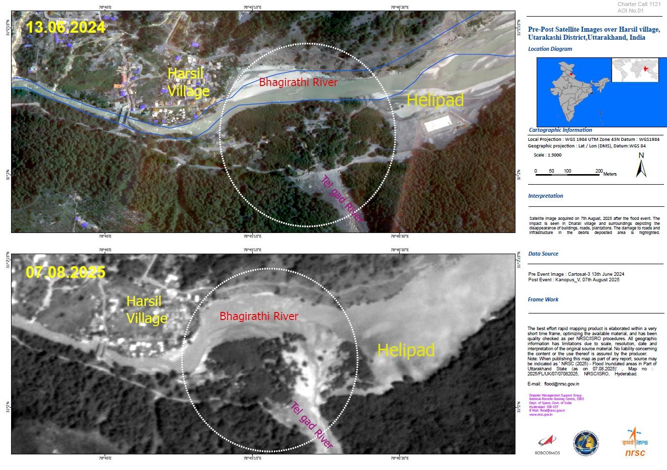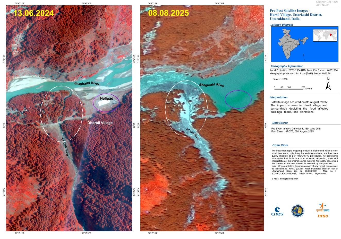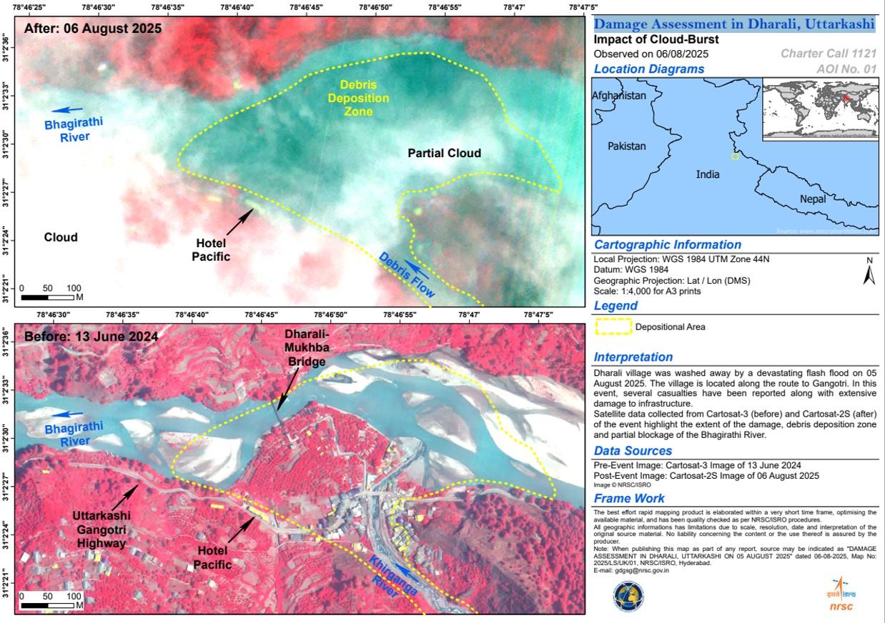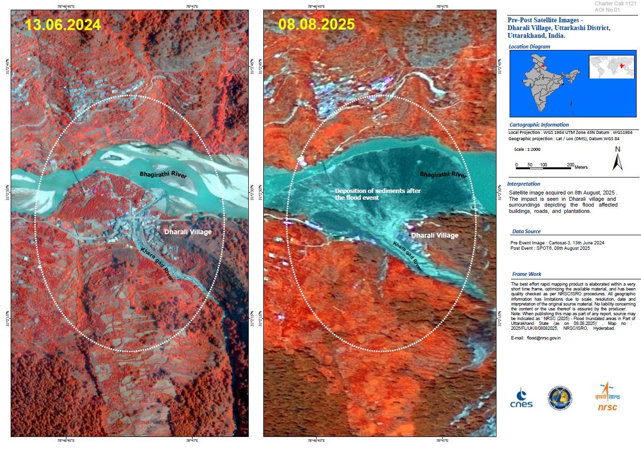 On 05 August, heavy rainfall in the northern region surrounding the Kheer Ganga River triggered devastating flash floods in Dharali village, located in Uttarkashi district, Uttarakhand, India.