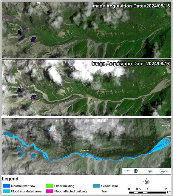 Sentinel Asia activation for Glacial Lake Outburst Flood (GLOF) in Solukhumbu, Nepal
