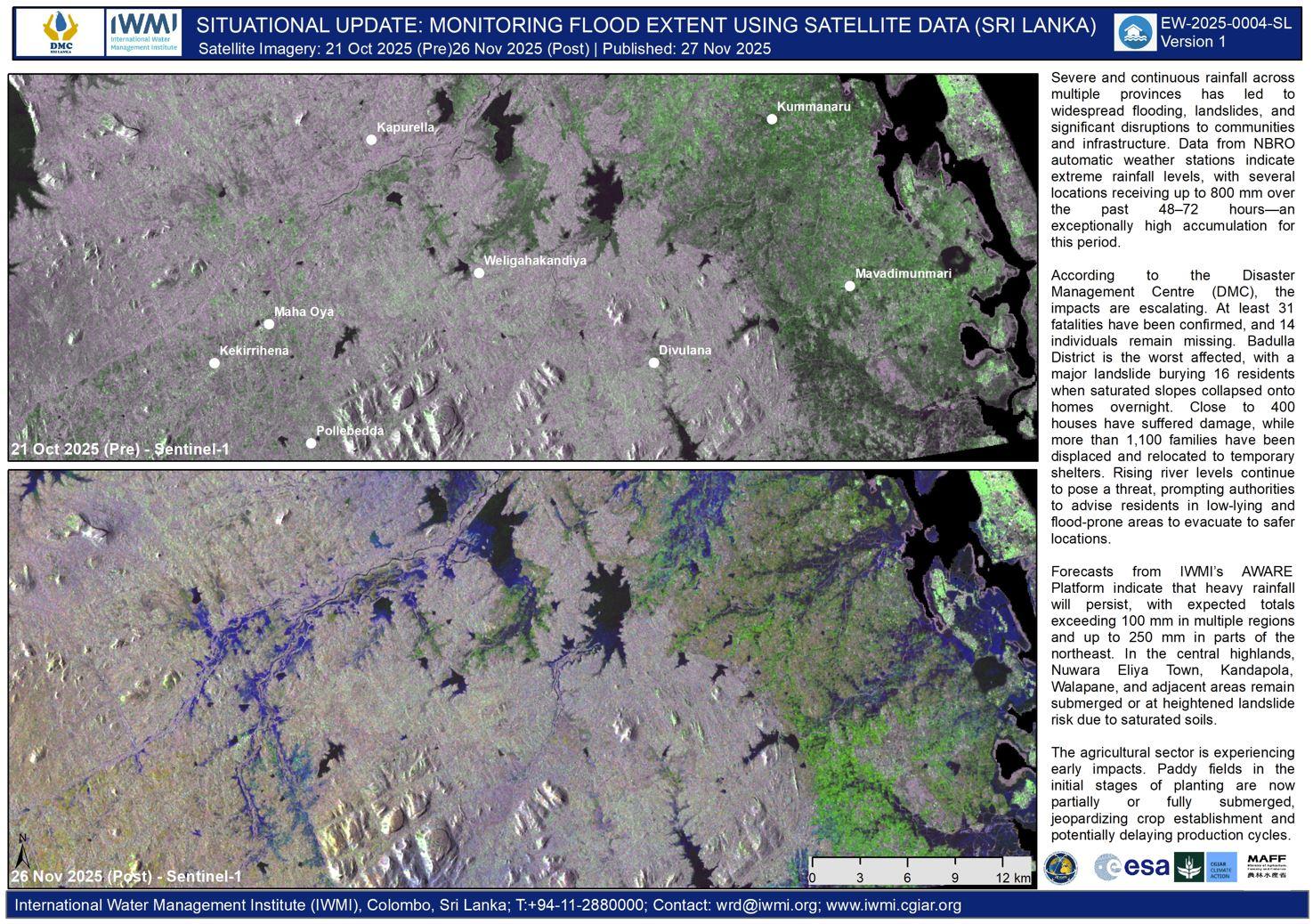 The National Building Research Organization (NBRO) has identified approximately 15,000 families living in high-risk landslide and rockfall zones. Nine deaths have been reported, and many areas remain isolated. Landslides and collapsed structures are complicating rescue efforts, while rising water levels in rivers and reservoirs pose ongoing risks, especially in low-lying settlements.