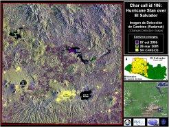 Hurricane Stan which made landfall on the Yucatan peninsula on 1st October caused heavy flooding and landslides over the next days in Central America. More than 40,000 people were affected. 70 people were reported dead. In El Salvador, the Ilamatepec (Santa Ana) volcano erupted on 1st October at around 8:20 local time, causing at least two deaths and affecting some 10,000 people living in areas west of the volcano. The Charter was activated on the 5th of October to assist the end user, Centro Nacional de Registros of El Salvador. The call was extended on 7th October at the request of UN-OCHA.