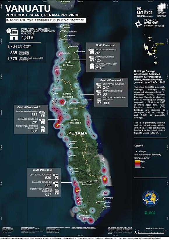 Making landfall on the 24 of October 2023 the Vanuatu Meteorology Department upgraded the cyclone to category 5 and winds brought by Lola were estimated up to 230 kph at the centre of the storm. Multiple provinces in the country's north and central areas specifically Torba, Sanma, Penama, Malampa, and Shefa were badly affected. As the storm progressed it was downgraded to a category 4. Lola is Vanuatu's third major storm in seven months.