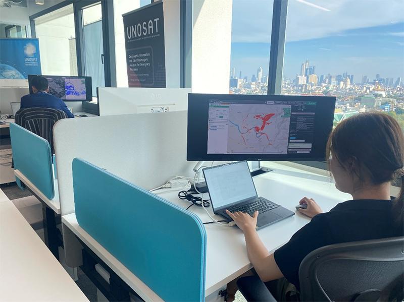 Charter Project managers from the United Nations Satellite Center Bangkok Office using the Charter Mapper to derive geoinformation from Charter EO data