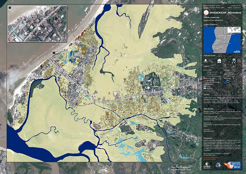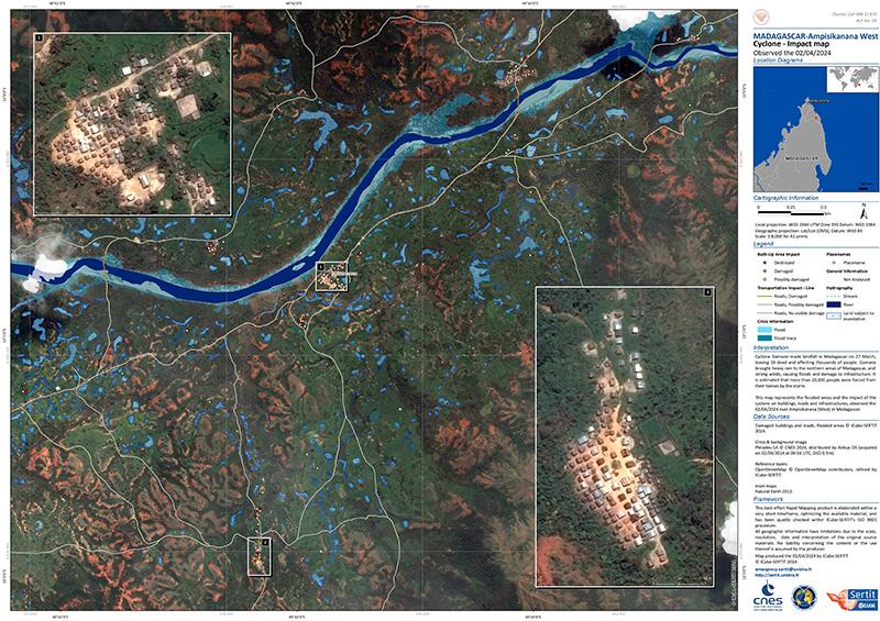 The impact is tangible; for instance, during Tropical Cyclone Honde in March 2025, which displaced over 21,600 people and damaged or destroyed nearly 9,000 homes, BNGRC leveraged Charter resources to produce rapid flood impact maps for Toliara and Morondava, supporting relief operations in hard-hit regions. Similarly, in March 2024, Cyclone Gamane triggered catastrophic flooding and landslides across northern Madagascar, forcing 20,000 people from their homes. Thanks to direct activation, BNGRC obtained high-resolution imagery and flood assessments within days, to inform targeted evacuations and resource allocation.